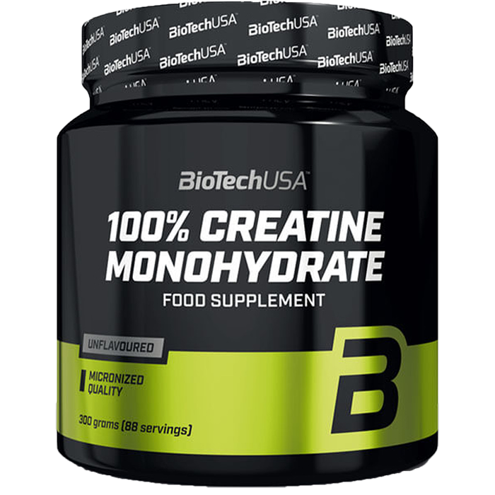 BioTech 100% Creatine Monohydrate – tai mikronizuotas kreatino monohidratas miltelių pavidale. Apie 95 % organizme esančio kreatino yra skeletiniuose raumenyse, kur jis padeda gaminti raumenų ląstelėms reikalingą energiją, optimizuodamas adenozintrifosfato (ATP) sintezę. ATP yra pagrindinis energijos šaltinis ląstelėse, būtinas fiziniam aktyvumui. Tyrimai rodo, kad kreatinas padidina fizinį pajėgumą atliekant labai intensyvius, trumpalaikius fizinius pratimus.